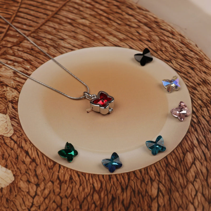 Why buy multiple lockets when one can match every mood and outfit? This exclusive butterfly locket necklace comes with 7 interchangeable colorful stones—red, blue, green, black, pink, purple, and crystal—that you can swap easily to suit your style. Crafted with premium Silver plating and a sleek chain, this versatile pendant is anti-tarnish, skin-friendly, and the ultimate fashion jewelry for women and girls.